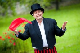 Direkt im Anschluss, um 16:30 Uhr, ist „Zeigerini“ zu Gast auf der Sommerbühne. Der Zauberer, Taschenspieler und Gaukler präsentiert seine Stand-up-Zaubershow mit Bühnenkunststücken, verblüffenden Tricks aus der Tischzauberei und stimmungsvollen Geschichten über die Welt der Wunder.