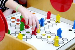 Die Besucherinnen und Besucher lernen unter Anleitung Spielregeln kennen und probieren vor Ort aus, welches Brettspiel ihnen am besten gefällt.