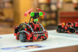 In unserer Technothek wollen Brücken aus Fischertechnik gebaut, Glühbirnen in Elektroschaltkreisen zum Leuchten gebracht und kleine BeeBot-Roboter zum Laufen gebracht werden.